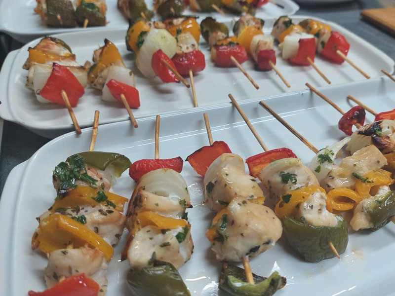 Servicios gastronómicos (dentro y fuera del salón) con vajilla propia, shots, bandeja dulce, barra de helados y tragos, asador de campo.